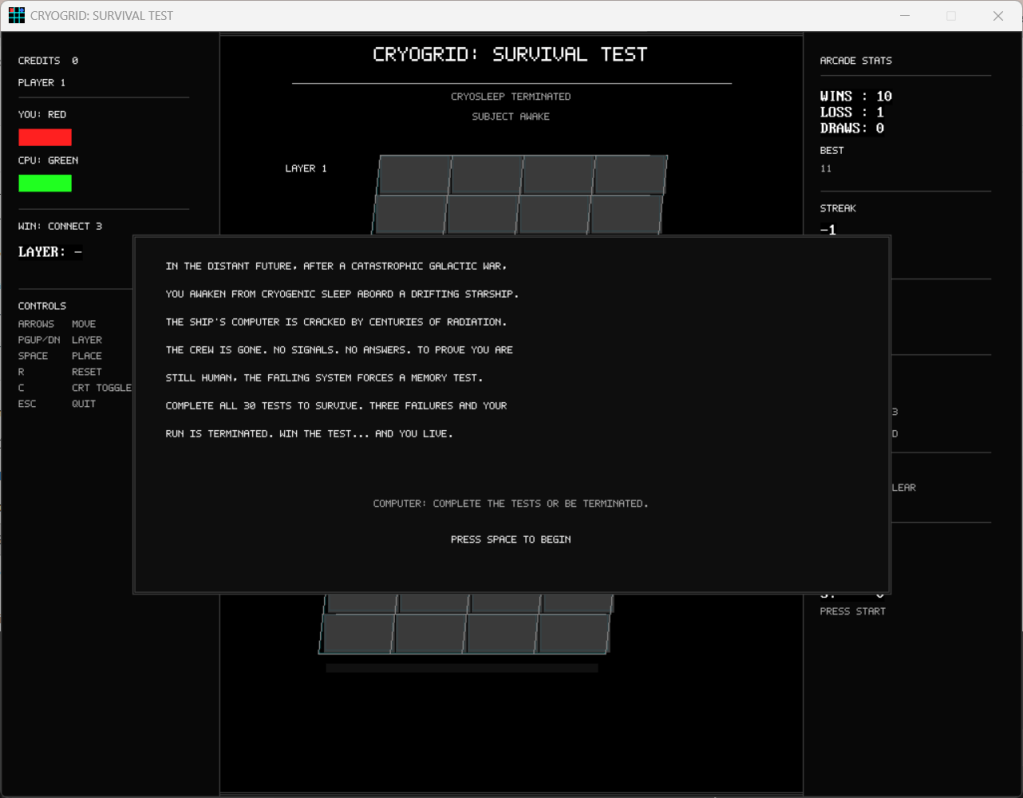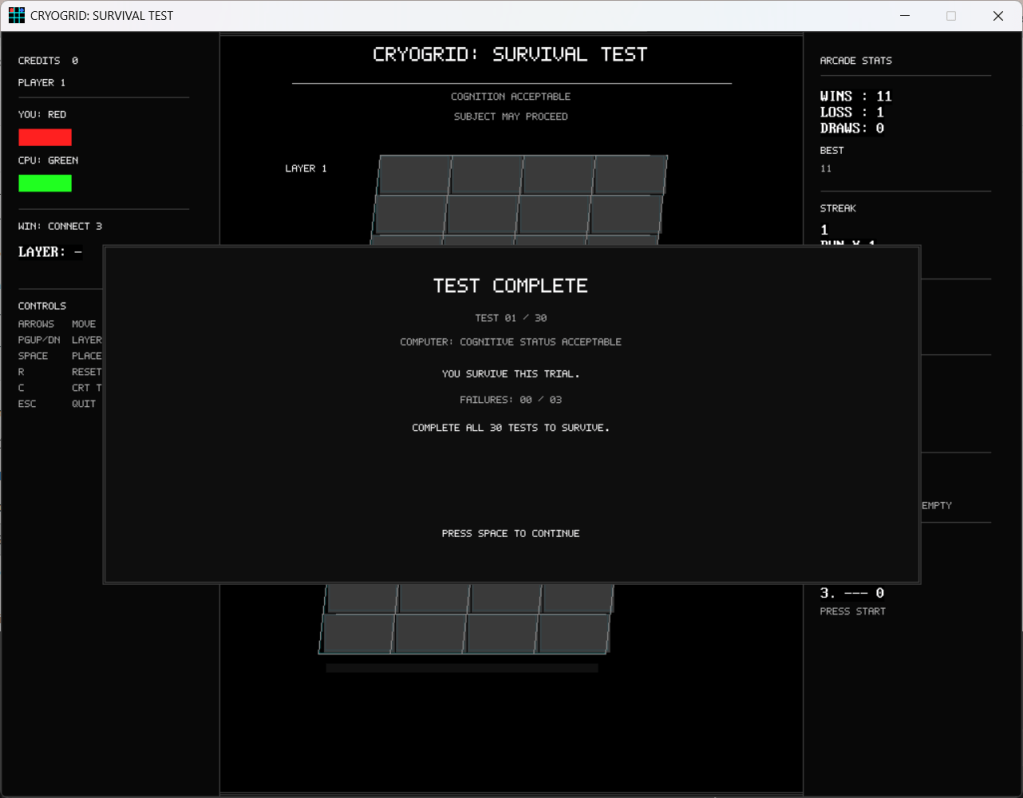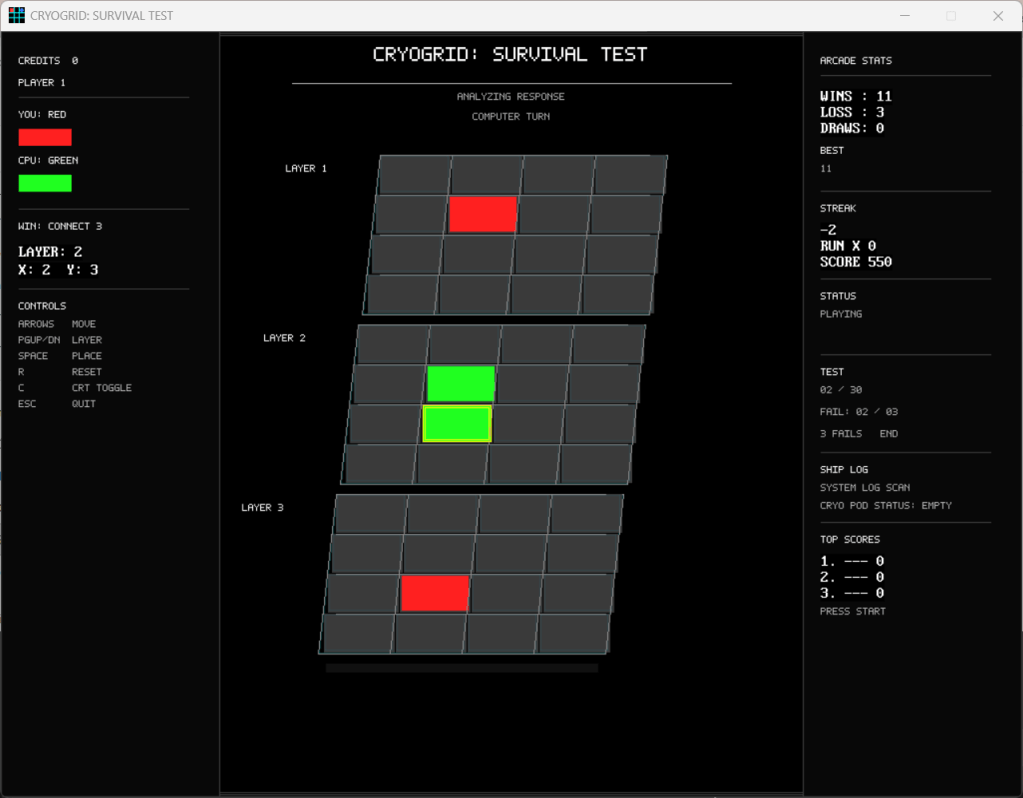 My daughter was actually watching me and helping test Cryogrid, which was a lot of fun. Seeing her react to the concept of 3D tic-tac-toe was amazing. She was completely blown away by it.